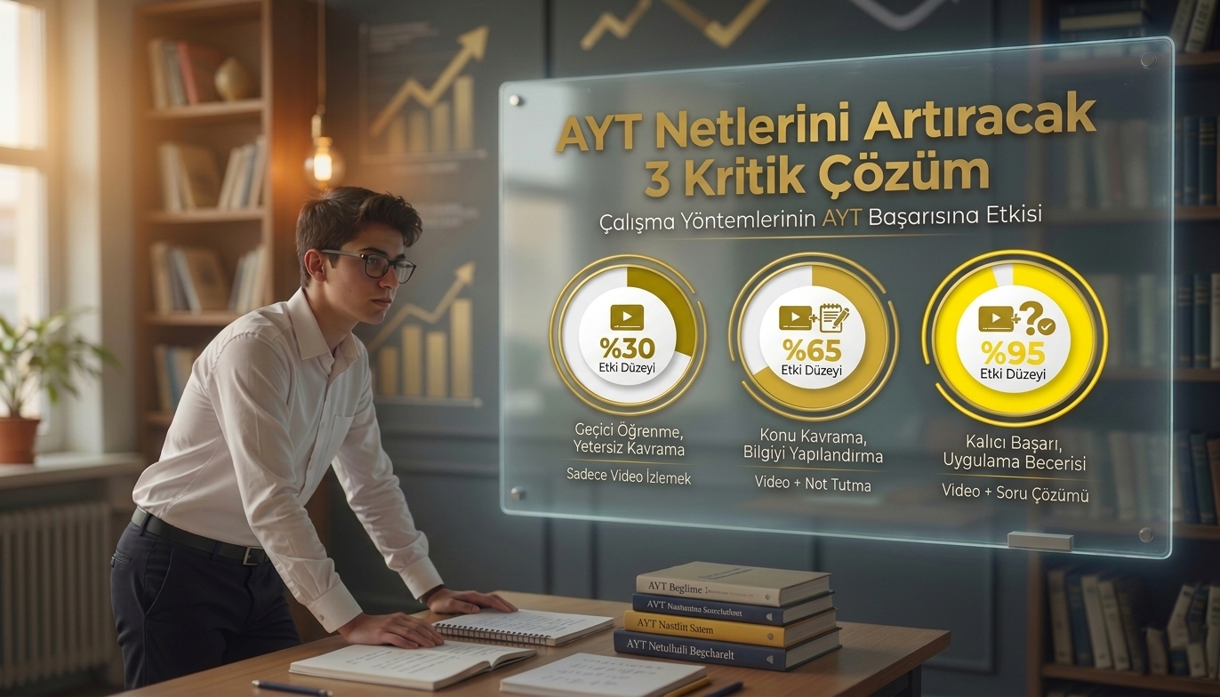 Video dersler harika bir kaynak olsa da, sadece izlemek “pasif öğrenme”dir. Bir hocayı izlerken her şeyin mantıklı gelmesi, konuyu tam anlamıyla kavradığınız anlamına gelmez. AYT, bilginin kağıda dökülmesini ve aktif bir uygulama sürecini zorunlu kılar.